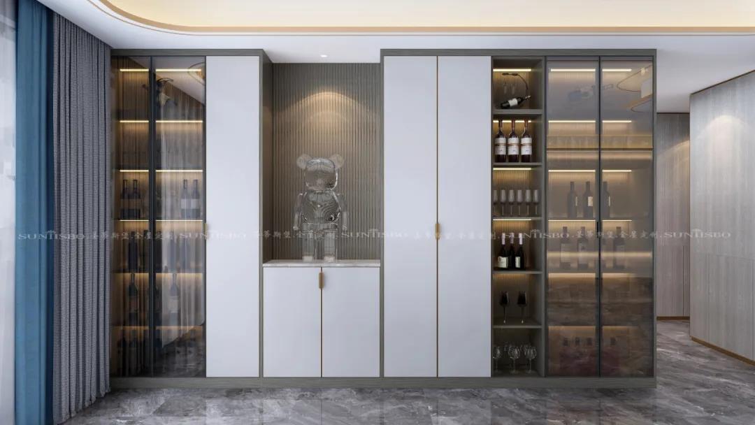 在细节设计之中,设计师以实木+纹理,营造一派简约轻奢之感,看似没有繁杂的元素修饰,却让家多了一份高级感。